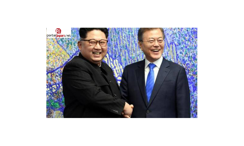 North Korean Leader Kim Jong Un at South Korean President Moon Jae-in