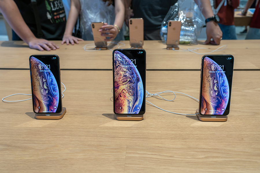 BANGKOK, THAILAND – NOVEMBER 2018 : Showing new iphone xs max and iphone xs on the table in Apple store new opening shop at the iconsiam department store on November 12, 2018 in bangkok, Thailand.
