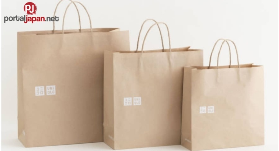 The paper shopping bags made from recycled paper and other eco-friendly materials that Uniqlo plans to introduce globally from September | FAST RETAILING CO. / VIA KYODO