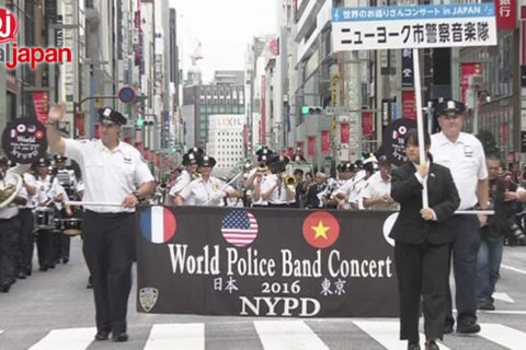 Police bands from around the world parade in Tokyo