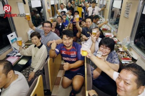 Isang train ang nag-bigay ng serbisyo na drink all you can beer matapos ang World Cup Rugby game sa Osaka