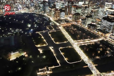 Outer garden ng Imperial Palace, nilagyan ng illumination