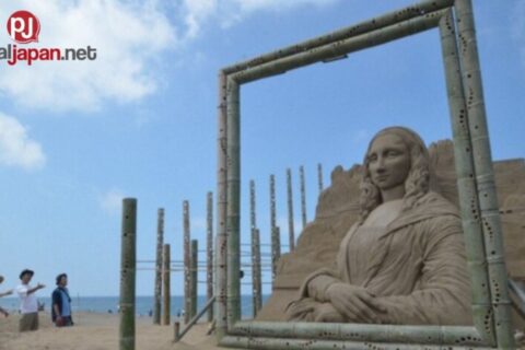 Sand sculptures na nagtataglay ng world art sa north Japan beach