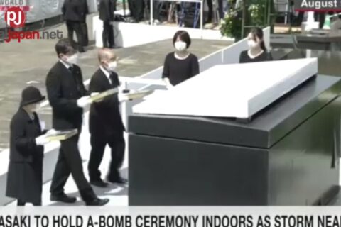Ipagdiriwang ang Nagasaki A-bomb anniversary ceremony indoors dahil sa paparating na bagyo
