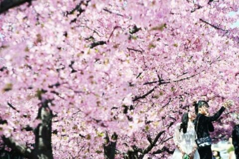 Maagang pag bloom ng Kawazu cherry trees sa Kyoto