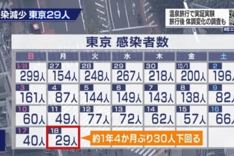 Tokyo reports 36 new COVID cases on Oct. 19, 11th day straight under 100