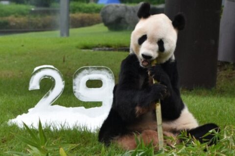 West Japan zoo giant panda na si Eimei binigyan ng bamboo sticks, ice block para sa kanyang 29th birthday